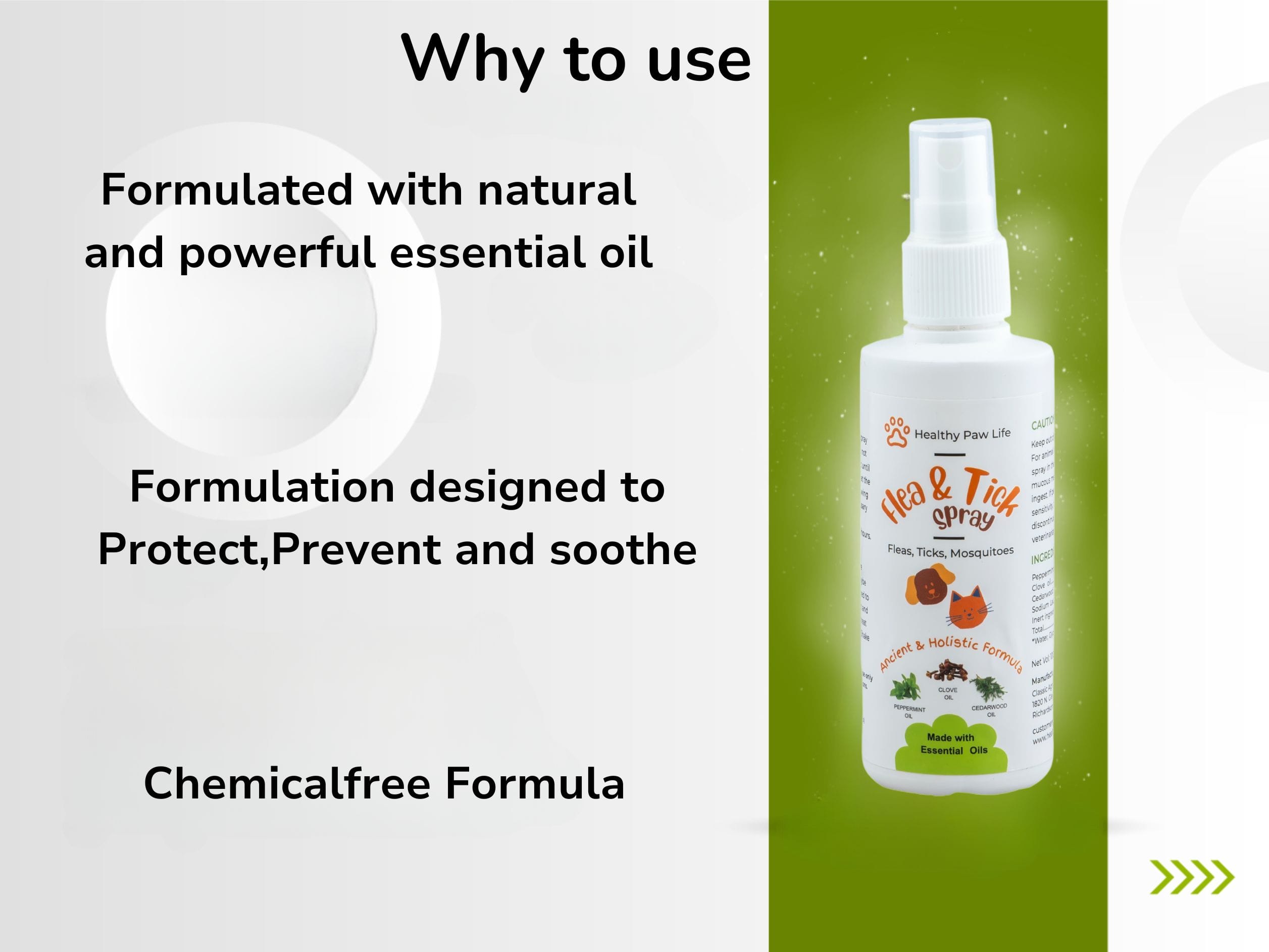 🐾 POWERED BY ESSENTIAL OILS–Formulated with plant-based essential oils – Cedarwood Oil, Clove Oil and Peppermint Oil to kill and repel fleas, ticks and mosquitoes.