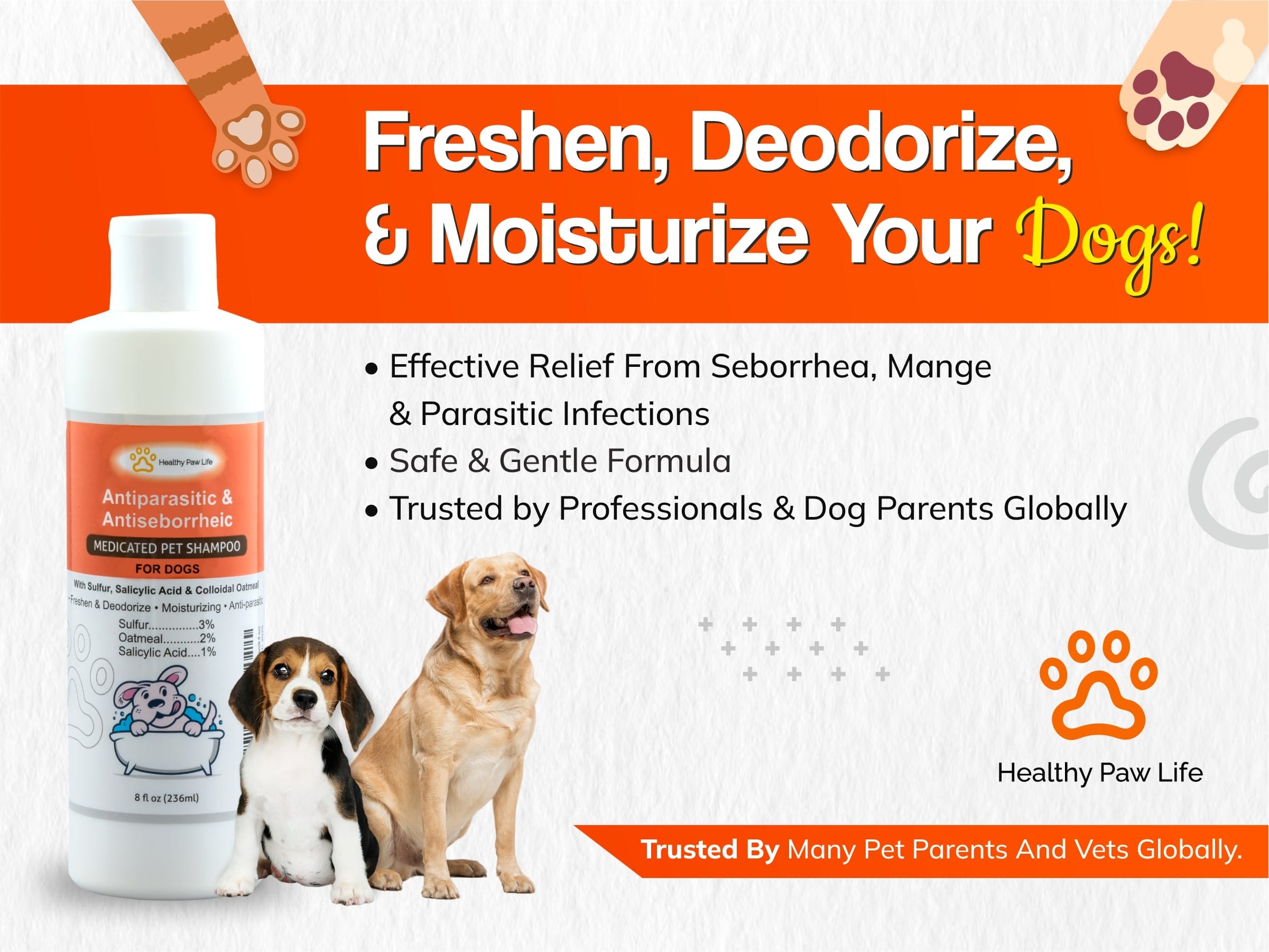 🐾 ALL-AROUND SOLUTION & GENTLE HEALING – Unsure of what’s causing your pet’s skin problem? Healthy Paw Life’s antiparasitic and antiseborrheic medicated shampoo for dogs contains sulfur, salicylic acid and oatmeal to help with skin scaling caused by seborrhea, mange and parasitic infections as well as non-specific dermatoses. Before long, your furry friend will be as healthy and vibrant as ever.